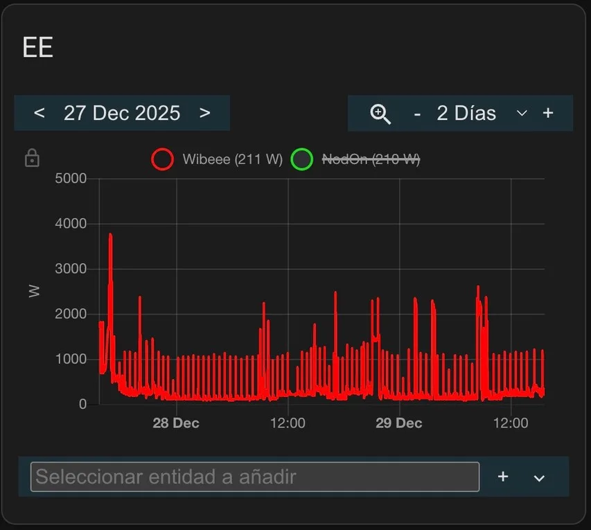 Aparte de poder dibujar el consumo siempre puedes hacer una «trampa» utilizando la nueva pestaña/opción de Energía en HA y bien poder verla ahí o si tienes además un Webeee ver los dos consumos de forma simultánea y ver si hay alguna discrepancia en los datos recibidos.