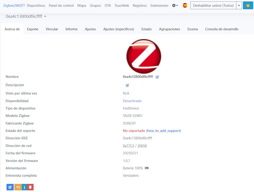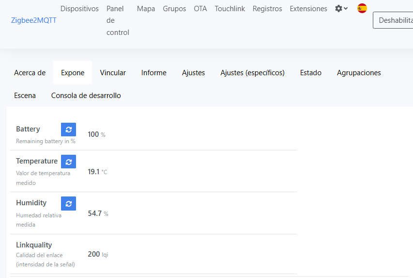 Mientras tanto podéis ver que nuestro termómetro ya lo tenemos «trabajando» para que nos vaya anunciando las condiciones meteorológicas de nuestra casa del pueblo. La instalación en HomeAssistant ha sido sumamente sencilla y ya lo tenemos integrado con el resto de dispositivos Zigbee